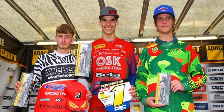 In dieser Klasse blieben die Top 3 Platzierungen an beiden Tagen unverändert. Arvid Meyer führte das Feld auf seiner Husqvarna FE 350 an, gefolgt von Julian Almstädt und Daniel Händel, beide vom Team Sturm Zschopau.