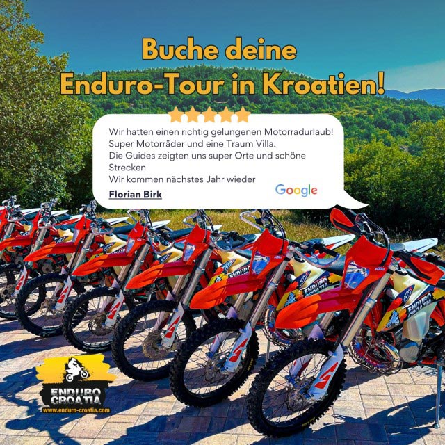 Enduro Croatia bietet ein einzigartiges Erlebnis für alle Motorrad-Enthusiasten. Buchen Sie jetzt und erleben Sie ein Offroad-Abenteuer, das Sie nie vergessen werden!
