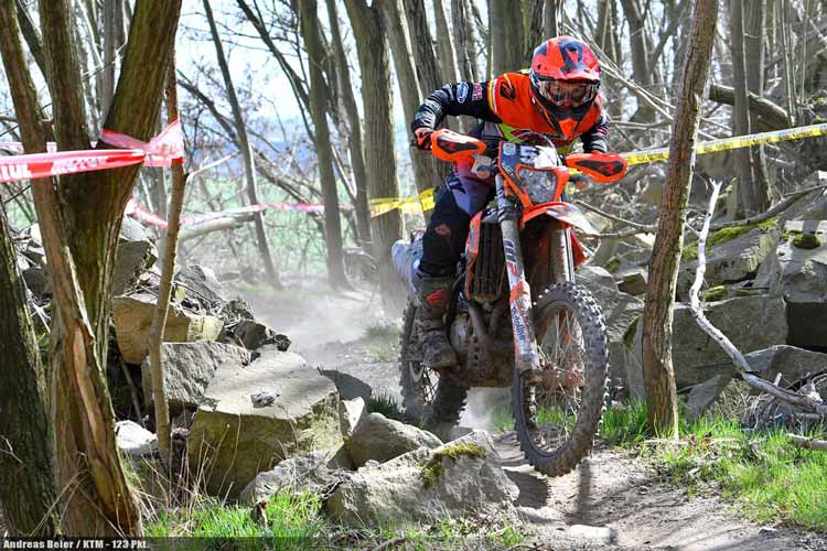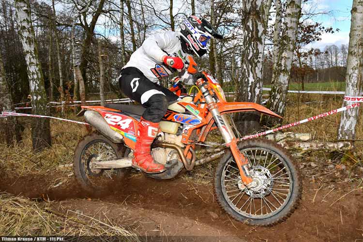 In Tucheim mischte allerdings ein ganz anderer Fahrer das Feld auf. Filip Bengtsson, einer von einem halben Dutzend Schweden, die den DEM-Auftakt zur eigenen Standortbestimmung nutzten, setzte die erste Bestzeit des Tages. Im Anschluss ließ der Husqvarna-Fahrer fünf weitere folgen und hielt somit seine Konkurrenten erfolgreich auf Distanz, so dass der ehemalige Motocrosser bei seinem DEM-Debüt gleich den Gesamtsieg abräumte. Rang zwei ging an Luca Fischeder (Sherco), der nur 19 Sekunden zurücklag. Platz drei sicherte sich KTM-Fahrer Davide von Zitzewitz, vor Yanik Spachmüller (GasGas), Andreas Beier (KTM), Edward Hübner (KTM) und Casper Lindholm (Husqvarna), einem weiteren schnellen Schweden. Alle fünf lagen innerhalb von nur 20 Sekunden – und das bei einer Gesamtprüfungszeit von über einer Stunde!