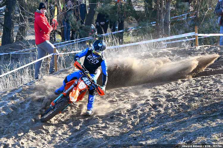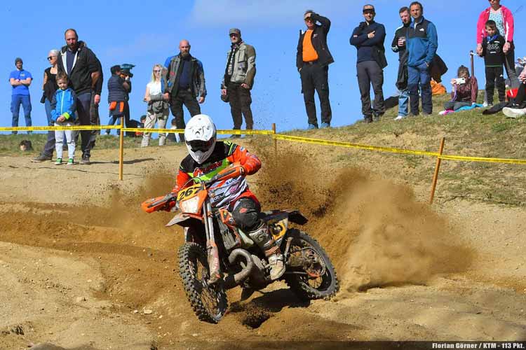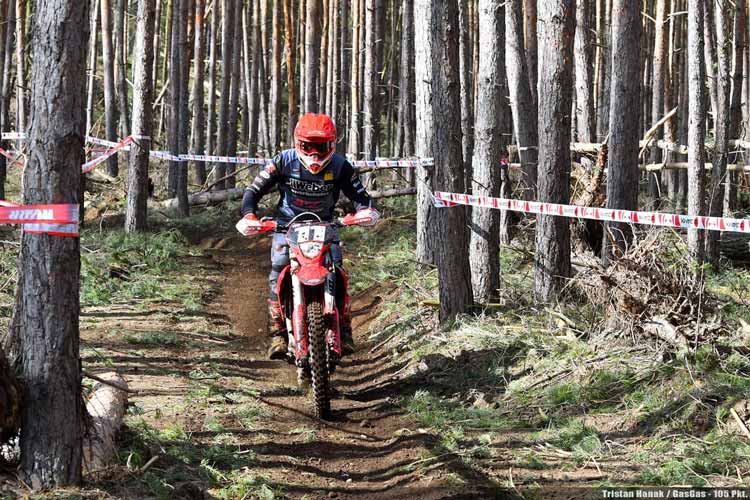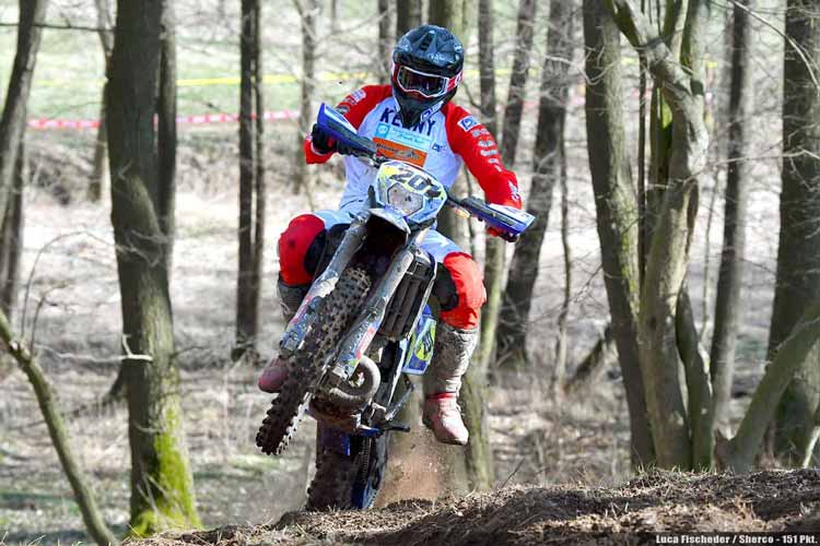 Bei „Rund um Dahlen“ schlug die große Stunde des Luca Fischeder. Voll motiviert und hochkonzentriert ging der Sherco-Fahrer sein Heimrennen an und ließ der Konkurrenz nicht den Hauch einer Chance. Mit sechs Bestzeiten sowie zweimal der zweitschnellsten Zeit in den insgesamt acht Wertungsprüfungen sicherte er sich überlegen den Tagessieg vor Auftaktsieger Filip Bengtsson. Krystof Kouble (Husqvarna) aus Tschechein, amtierender Overall-Europameister, machte als Dritter das internationale Podium perfekt. Starker Vierter wurde Chris Gundermann auf KTM. Nur eineinhalb Sekunden dahinter folgte Edward Hübner, weitere zwei Casper Lindholm.
