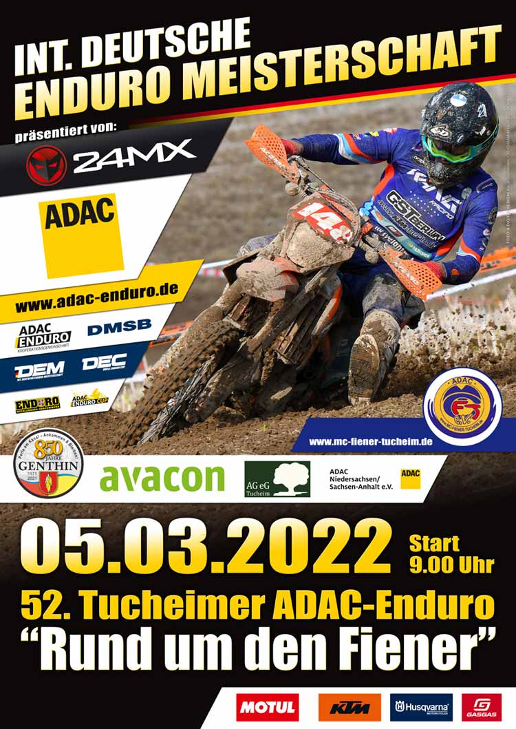 Die Int. Deutsche Enduro Meisterschaft steht in den Startlöchern. Bereits in einem reichlichen Monat geht es beim ersten Lauf in Tucheim mächtig zur Sache. Die Geländefahrt „Rund um den Fiener“ war bereits 2018 die DEM-Auftaktveranstaltung. Damals herrschten taffe, teils noch winterliche Verhältnisse. Und auch 2022 dürfen sich die Teilnehmer und Teilnehmerinnen auf einen echten Härte-Test einstellen!
