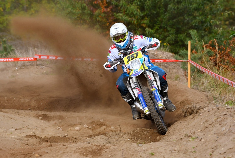 Auch Dennis Schröter hatte trotz des langen Tages mit drei Runden und insgesamt zehn Sonderprüfungen ein Lächeln im Gesicht. „Ich kann es noch“, grinst der Husqvarna-Fahrer, nachdem es in Rehna nicht so ganz nach Wunsch lief. „Heute war ich von Beginn an voll da. Das lag bestimmt auch an der späteren Startzeit“, lacht der Routinier angesichts der Tatsache, dass es heute erst 9 Uhr losging.