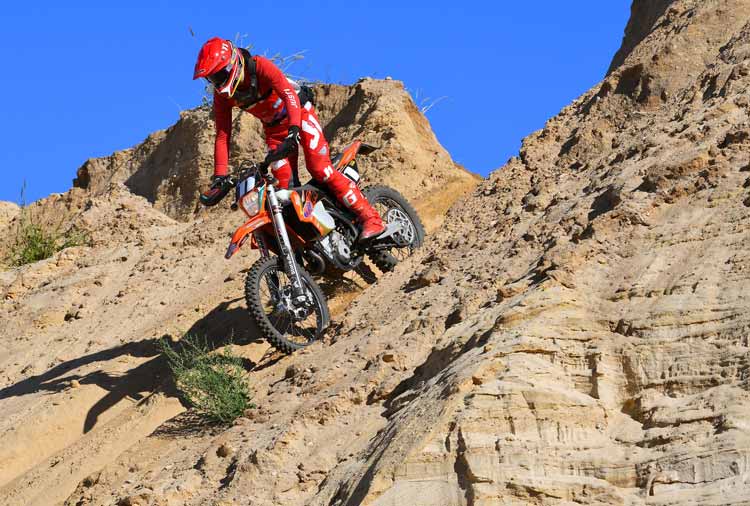 Auch Dennis Schröter war die Zufriedenheit sichtlich ins Gesicht geschrieben. „Als ich am Morgen aufgewacht bin, habe ich gedacht, wie soll ich den Tag nur überstehen“, spielt der amtierende Champion mit einem Schmunzeln auf den heftigen Muskelkater vom Vortag an. „Doch nach fünf, sechs Kurven im ersten Test habe ich gemerkt, da geht doch etwas.“ Und so blieb der Husqvarna-Fahrer zumindest bis zur dritten Runde Hamish Macdonald auf den Fersen. „Aber am Ende lief gar nichts mehr, da war ich vom Kopf her platt. Dennoch, es war ein richtig guter Tag“, freut sich Dennis Schröter.