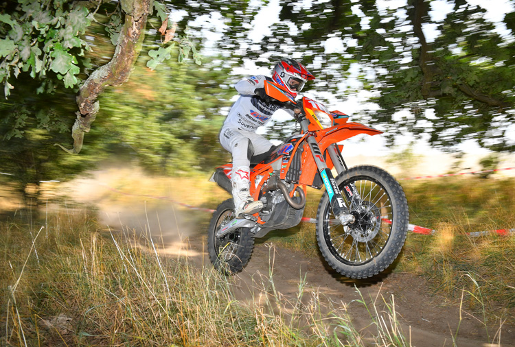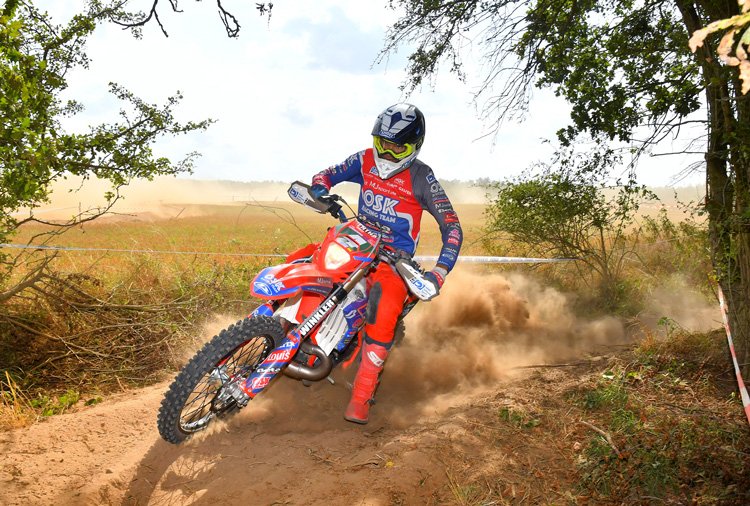 Auch am zweiten Tag der Enduro DM in Burg war Jeremy Sydow auf seiner Sherco das Maß aller Dinge. Wie bereits am Samstag setzte er sich souverän gegen Luca Fischeder und Davide von Zitzewitz durch und sicherte sich den Sieg.