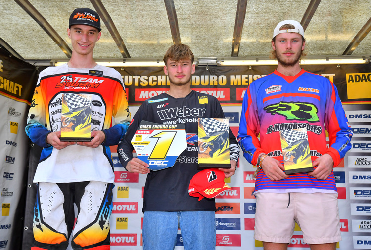 Im DEC (Deutscher Enduro Cup) konnte Nic Matthias nach seinem gestrigen zweiten Platz heute den Sieg im B-Championat einfahren. „Da es mein Heimrennen ist, steht man doch ein wenig mehr unter Druck,“ erklärte der glückliche KTM-Fahrer. Platz zwei ging an Kenny Riedel (KTM), während Yanik Koßack auf Beta das Podium komplettierte.