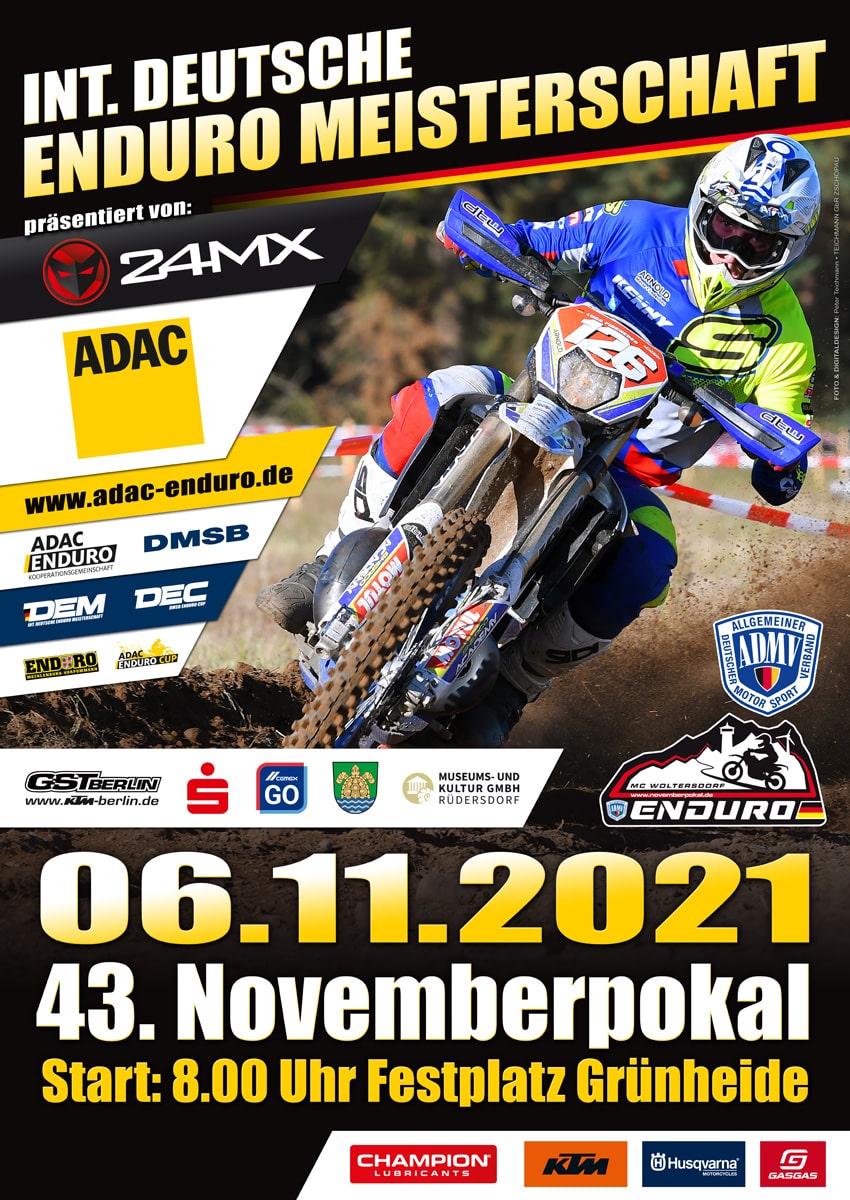 Am 6.11. wird der 43. Novemberpokal, als Finale zur diesjährigen Int. Deutschen Enduro Meisterschaft sowie dem DMSB Enduro Cup, ausgetragen. Allerdings wird diese traditionsreiche Motorsportveranstaltung diesmal nicht in Rüdersdorf, sondern in Grünheide, rund zehn Kilometer südlich gelegen, gestartet. Also genau dort wo vor 50 Jahren schon einmal ein bedeutender Meisterschaftslauf ausgetragen wurde. Damals hieß diese Geländefahrt noch „Rund um Grünheide“ und zählte als Wertungslauf zur „Deutschen Meisterschaft der DDR“. In die Siegerlisten trugen sich damals u.a. Fahrer wie Werner Salevsky und Fred Willamowski ein, die in den 60iger Jahren Mitglieder der siegreichen Trophy-Mannschaften auf den legendären MZ-Motorrädern waren.