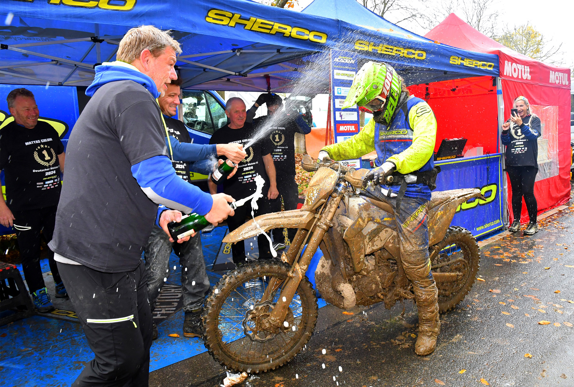 Zum Saisonfinale der Deutschen Enduro Meisterschaft in Kempenich kam es zu einem packenden Showdown mit vielen Erfolgen und Emotionen. Während einige Titel bereits in der Vorwoche entschieden wurden, feierten in Kempenich nun Matyas Chlum, der den E3-Titel holte und Arvid Meyer, der die Junioren-Klasse 2 dominierte und damit Geschichte schrieb. Doch auch Jeremy Sydow sorgte für einen krönenden Abschluss einer überragenden Saison.