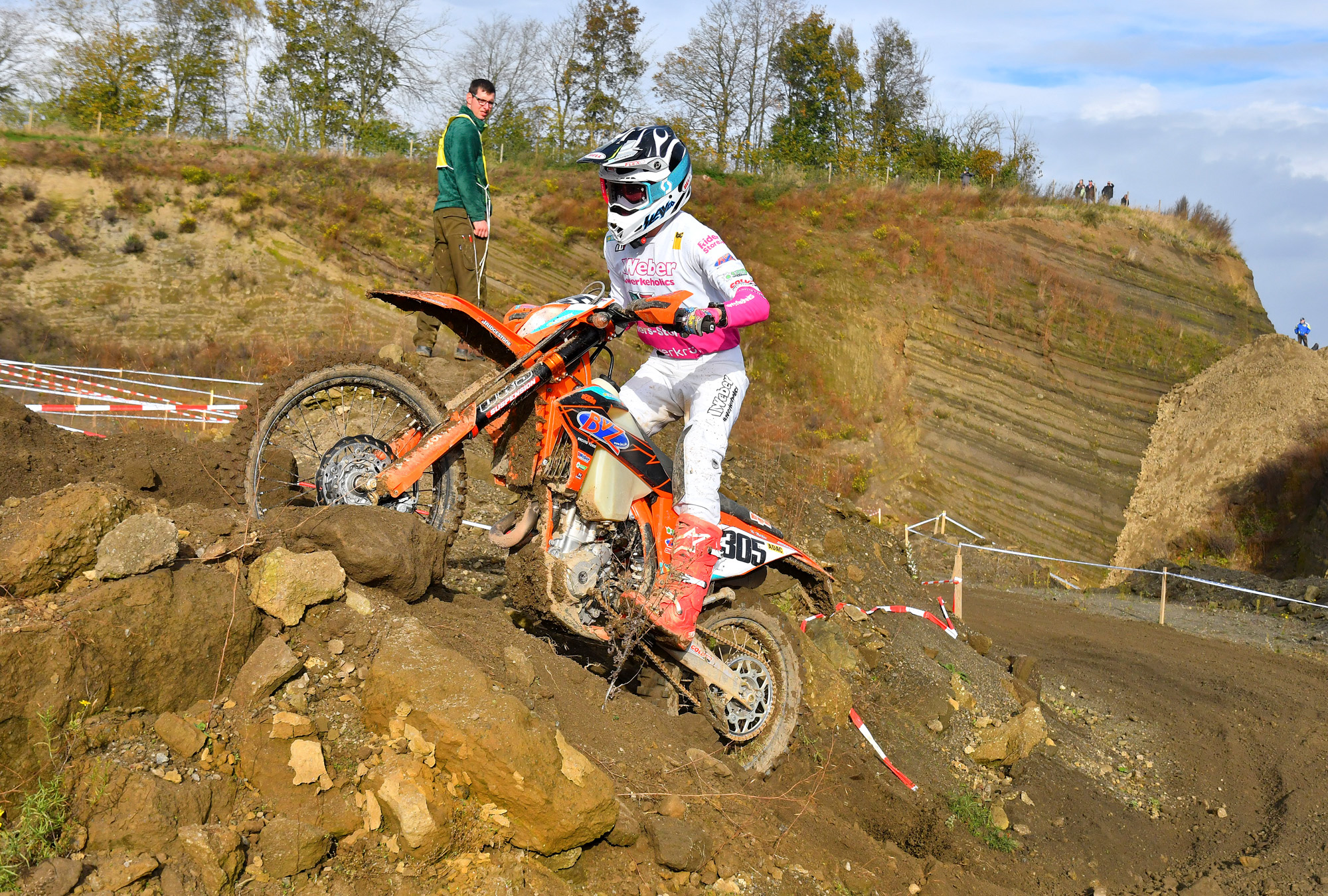 Im Championats-Ranking folgte Robert Riedel (GasGas) auf einem starken siebten Platz, dem derartiges Terrain, wie hier in der Vulkan-Eifel, nicht unbedingt in die Karten spielt. Fynn Hannemann (Beta) wurde Achter und konnte sich zudem über den Sieg in der Klasse Junioren 1 freuen. Rang neun sicherte sich Maximilian Wills (Husqvarna), Platz zehn ging an Pascal Sadecki (Fantic).