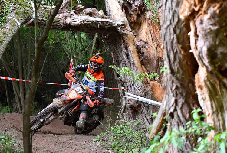 Hinter den Top Drei des Tages belegte Routinier Andreas Beier den vierten Rang. Nach der Hälfte des Tages lag er sogar an dritter Stelle, doch ein heftiger Sturz an einem Bergab-Sprung kostete wertvolle Zeit. „Schade, in die Top Drei im Championat zu fahren, wäre wirklich eine schöne Sache gewesen“, stellt der KTM-Fahrer nüchtern fest, der sich zumindest mit dem E1-Tagessieg etwas trösten konnte.