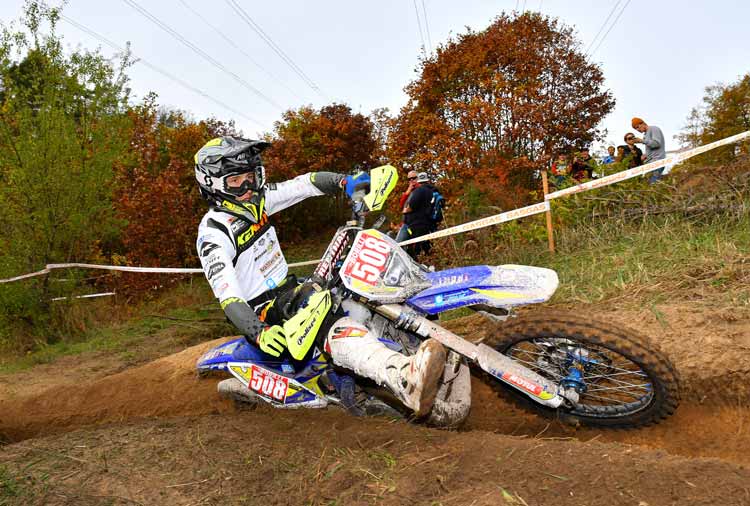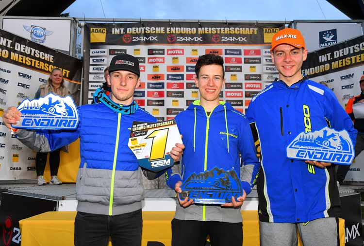 Platz drei ging an einen glänzend aufgelegten Milan Schmüser, der damit nicht nur sein erstes Top-Drei Ergebnis im Championat einfahren konnte, sondern auch dafür sorgte, dass das Podium komplett in „Sherco-Hand“ ging. „Es war ein großartiger Tag! Die Prüfungen haben mir einfach nur totalen Spaß gemacht. Die waren technisch, aber dennoch schön rund zu fahren. Das kam mir einfach total entgegen“, freut sich der 19-Jährige, der zudem die Junioren-Klasse gewann und morgen dort den Titel sicherstellen möchte.