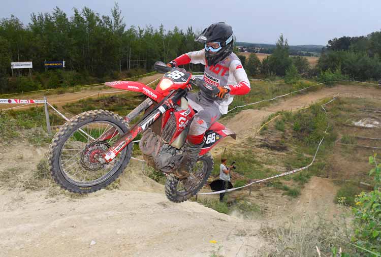 Auch am zweiten Tag drückte Hamish Macdonald der ersten Auflage des ADAC Meltewitzer Sprint-Enduro seinen Stempel auf. Auch die Tatsache, dass am heutigen Tag die Etappe, wie auch die Sonderprüfung, in entgegengesetzter Richtung gefahren wurde, ließ den Neuseeländer vollkommen unbeeindruckt. Im Gegenteil: „Mir hat die Streckenführung heute sogar besser gefallen, denn sie war teilweise noch etwas technischer als gestern. Zudem taten sich komplett neue Linien auf und es gab andere Stellen, an denen man so richtig schön pushen konnte. Das hat extrem Spaß gemacht“, so der Sherco-Fahrer, der zu seinem Resultat nur mit einem verschmitzten Lächeln meinte, „Alles gut, Sieg geholt, Mission erfüllt!“