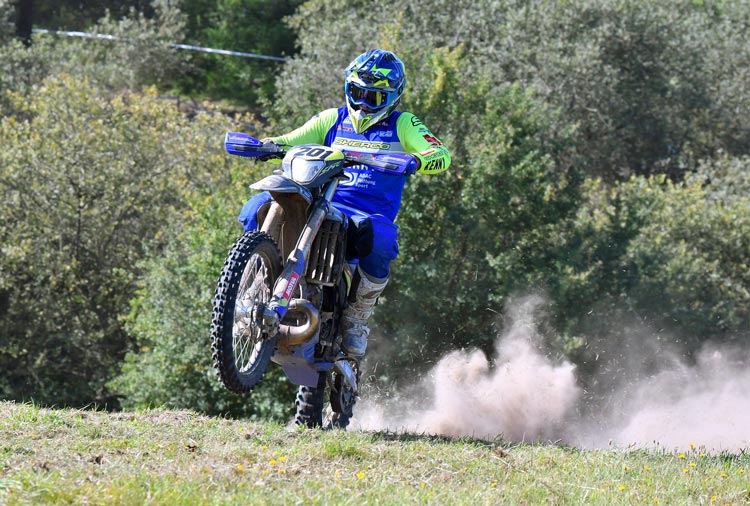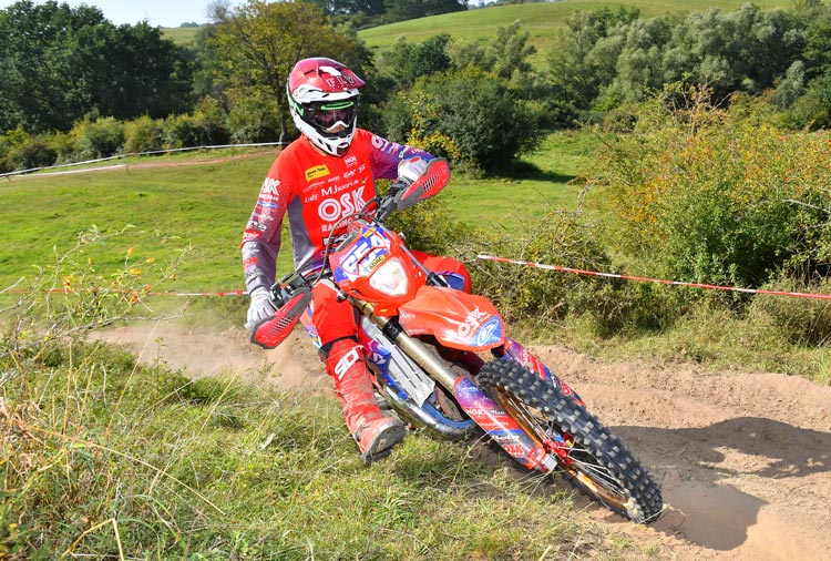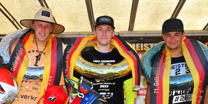 In Abwesenheit von Jeremy Sydow wurde der vorletzte Lauf zur Int. Deutschen Enduro Meisterschaft zu einer klaren Angelegenheit für Luca Fischeder. Er gewann sechs der sieben Sonderprüfungen und dominierte damit das gesamte Rennen. Ein kleiner Fauxpas in der zweiten Sonderprüfung konnte ihn nicht aus der Ruhe bringen. „Ich habe mir die ganze rechte Körperhälfte geprellt, aber das war letztlich unwichtig. Ich bin extrem happy, dass ich meinen E3-Titel vorzeitig verteidigen konnte“, resümierte Fischeder.