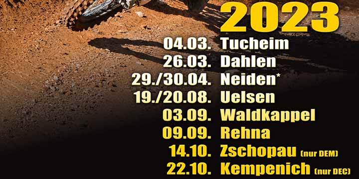 Der Terminkalender für die kommende Saison steht und hält einige Überraschungen parat! So werden zwei Veranstaltungen zurückkehren, welche das DEM-Prädikat zuletzt vor vier Jahren inne hatten. Gänzlich neu ist ein zweitägiges Sprint-Enduro, das nicht nur für die DEM-Fahrer ausgerichtet wird, sondern erstmalig auch für die Klassen des B-Championats. Zudem verkürzt sich die Sommerpause, im Gegensatz zur Vorsaison, um ganze zwei Monate!