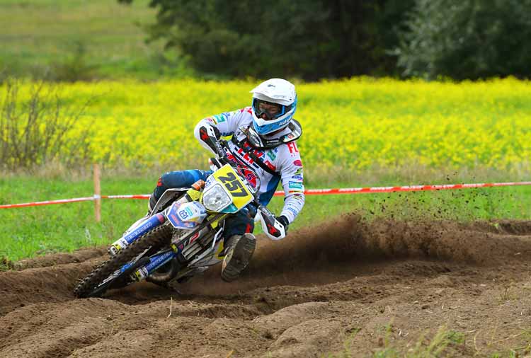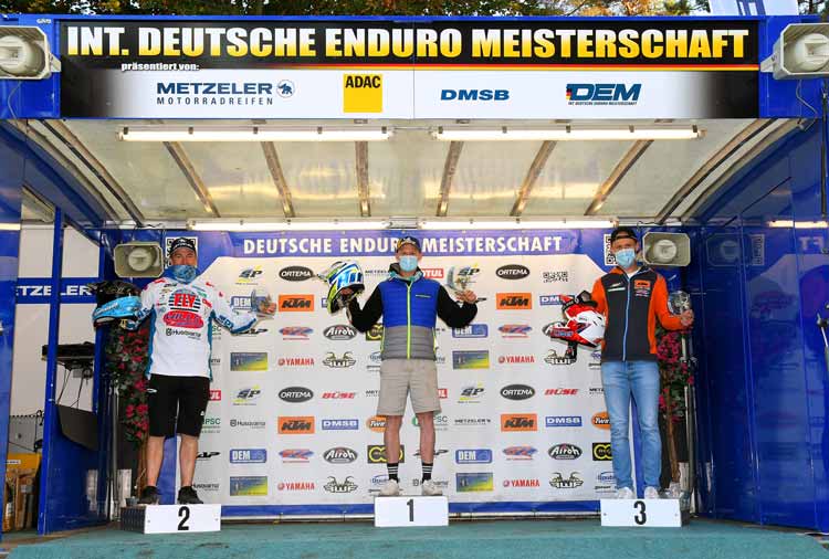 Wie schon in Burg komplettierte Davide von Zitzewitz das Podium als Dritter, der zwar keinen Sturz in den Tests zu beklagen hatte, aber dennoch zu viele kleine Fehler gemacht hatte. „Vor allem beim Test in der Sandgrube, der mir eigentlich liegen sollte, habe ich mich heute etwas schwer getan. Keine Ahnung warum“, zuckt der KTM-Fahrer mit den Schultern. Auch dahinter glich das Ranking, dem der Vorwoche aus Burg. Luca Fischeder überzeugte einmal mehr als starker Vierter. Edward Hübner wird solider Fünfter vor Robert Riedel, der abermals die Klasse E1 gewann. Ein neues Gesicht gab es hingegen auf dem Treppchen der Junioren-Klasse zu sehen. Hier siegte erstmals Oskar Wolff auf seiner Husqvarna, der sich mit dem bisherigen Serien-Sieger Noah Wenz ein packendes Duell bis zur letzten Prüfung lieferte.