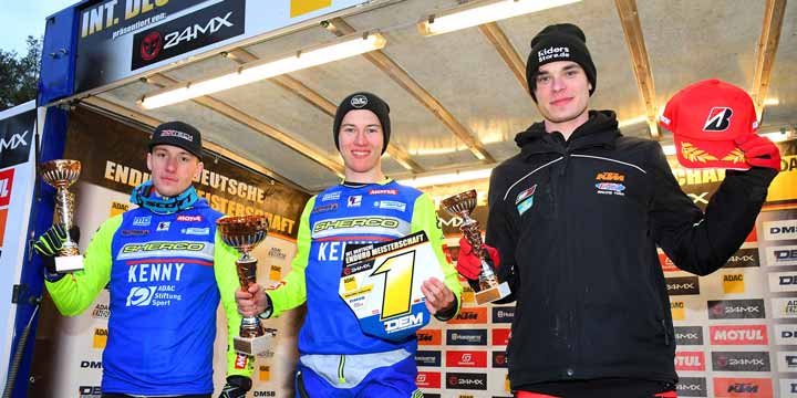 Die Ränge sechs bis neun waren fest in KTM-Hand. Edward Hübner, vor Florian Görner, Davide von Zitzewitz, der die Klasse E2 gewann, und Chris Gundermann. Die Top Zehn komplettierte Gustav Mähler. Der Schwede gewann nicht nur die Junioren-Klasse, sondern war mit seiner Husqvarna letztlich bester ausländischer Starter in einem bunten, fünf Nationen umfassenden DEM-Starterfeld.