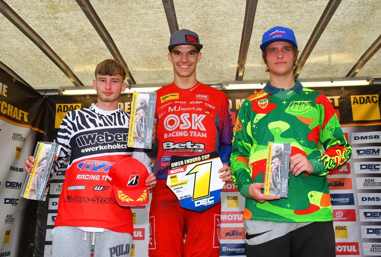 Der DMSB Enduro Cup wurde erneut von jungen Talenten dominiert. Fynn Hannemann, Mathias Nic und Clemens Voigt, alle auf 125ccm-Zweitakt-Maschinen, belegten die ersten drei Plätze.