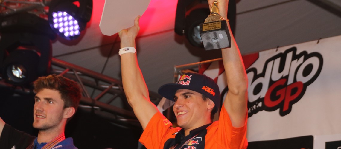 Am vergangenen Wochenende krönte sich KTM-Enduro-Werksfahrer Josep Garcia zum FIM-Weltmeister 2017 in der Enduro2-Klasse. Beim Saisonfinale im deutschen Zschopau reichte dem talentierten Spanier ein zweiter Platz am ersten und ein fünfter Platz am zweiten Wertungstag, um den begehrten E2-Titel einzufahren und der langen Liste an Enduro-Weltmeisterschaften des österreichischen Herstellers einen weiteren hinzuzufügen.