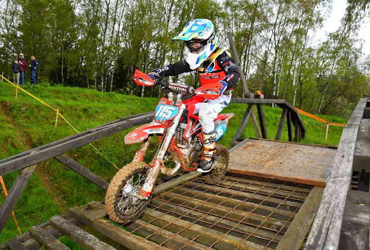 Bei anspruchsvollen Bedingungen setzte sich Auftakt-Sieger Paul Ziechner in der Kategorie 50 ccm durch, während Franz Flieger erstmals die Klasse 65 ccm gewann. Vormittags gingen zunächst die Jüngsten auf die Strecke, die sich durch den nächtlichen Regen überaus anspruchsvoll präsentierte. Doch die jungen Nachwuchs-Enduristen trotzen den rutschigen Bedingungen und spulten ihre zehn Runden routiniert ab. Am Ende gewann Paul Ziechner aus Dahlen die Klasse 50 ccm mit 25 Sekunden Vorsprung deutlich. Wesentlich enger ging es im Kampf um den zweiten Platz zu. Hier setzte sich John Ebert (Wermsdorf), mit sechs Sekunden Vorsprung, knapp gegen den Grünhainer Ben Raschke durch. Mika Klose aus Riesa wurde Vierter und Lokalmatador Henry Richter (Witzschdorf) komplettierte die Top Fünf.