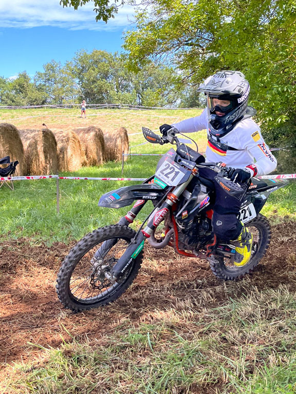 Lea Meier: „Der erste Fahrtag war aufgrund von Husten und Schüttelfrost schwierig. Am zweiten Tag ging es mir besser und ich konnte mich deutlich verbessern, da ich mich an die Bodenverhältnisse gut angepasst hatte. Mit einem Anteil von 90% Cross/Wiese und nur 10% Enduro waren die anderen Fahrerinnen im Vorteil. Ich bin froh, durchgefahren zu sein und Punkte für die Meisterschaft mitgenommen zu haben.“
