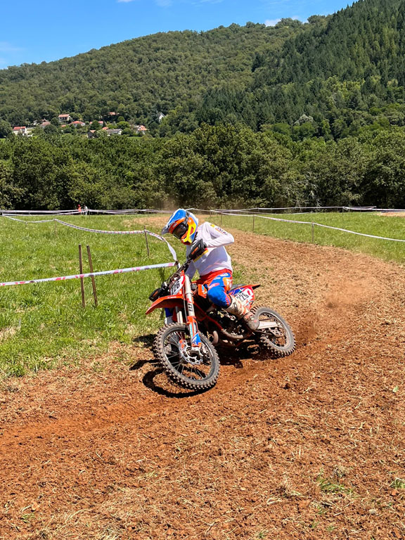 Riaan Hoffmann: „Die zweite Runde des MiniEnduro European Cup 2024 in Monteils hat mir wieder viel Spaß gemacht. Einige herausfordernde Passagen erweiterten meinen Erfahrungshorizont und der Ausblick während der langen Etappe war wunderschön.“