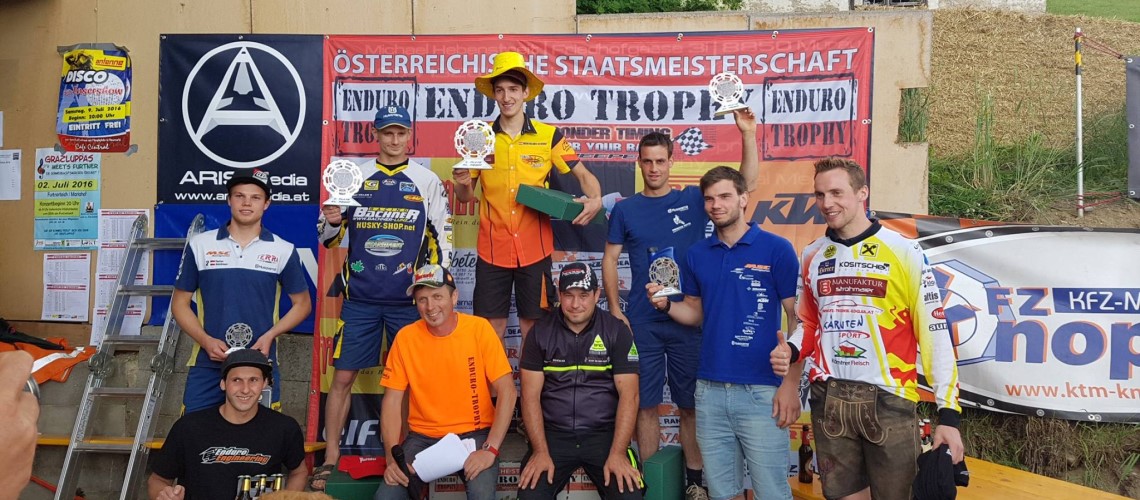 Mit denkbar knappen 22sec. Vorsprung sichert sich Bernhard Schöpf einen weiteren Sieg in der EnduroÖM vor Thomas Hostinsky und Matthias Wibmer und damit ein weiterer Schritt in Richtung Titelverteidigung für den Team KTM Walzer Fahrer.