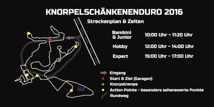 Je 60 Teilnehmer starten in der Klasse Hobby und Expert und nehmen den Rundkurs für jeweils 2 Stunden unter die Räder. Dieses Jahr ist an Langeweile auf dem Motorrad nicht zu denken. Eher lange Arme werden sich nach einigen Runden einstellen. Die Expert Klasse fährt entgegengesetzt der Hobby Klasse und hat zuzüglich Streckenabschnitte, die das „Können“ und den „Mut“ auf dem Motorrad herausfordern!
