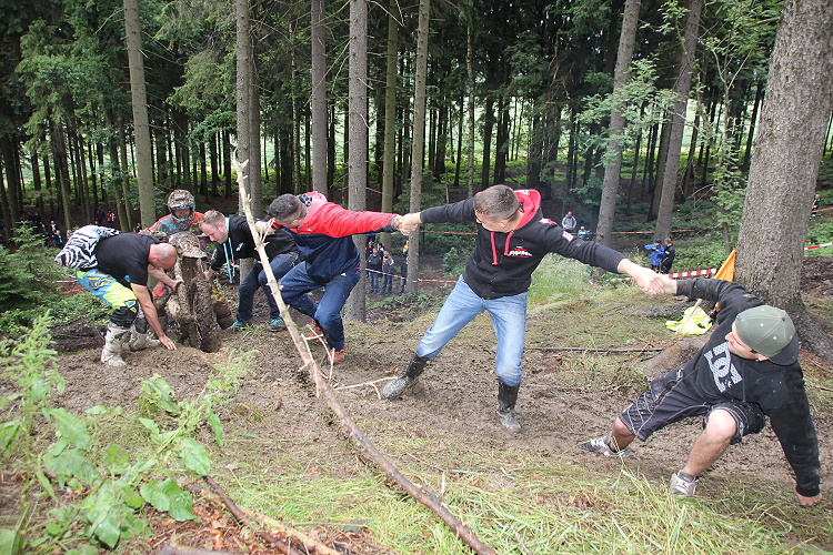 Der Regen behinderte auch den Sportfahrerlauf. Dort waren sowohl Teams und Einzelfahrer aus ganz Deutschland am Start. Zu den schlammigen Bedingungen wurde die Strecke nochmals verschärft, es wurde nun gegen den Uhrzeigersinn gefahren. Somit waren die Auffahrten nun erheblich schwieriger zu meistern. Besonders in der ersten Runde kam es sogar in Extremenduro Art zu Staus an den Hängen.