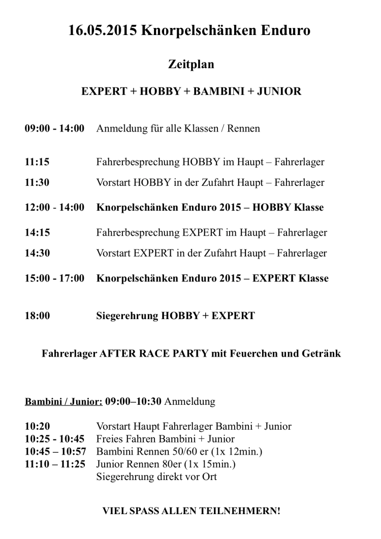 Auf einer etwas leichteren klassischen Endurorunde werden die Hobbyfahrer ab 12 Uhr ins Rennen gehen. Die Expertfahrer starten ab 15.00 Uhr auf einer etwas schwereren Runde mit einigen Highlights. Wie uns der Streckenchef gestern verriet würde sich auch Jonny Walker nicht unbedingt langweilen. Neben Abschnitten im Wald, wurden in der Nähe des ehemaligen Sanatoriums auch einige künstliche Hindernisse eingebaut.