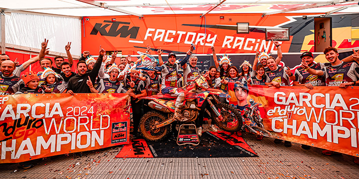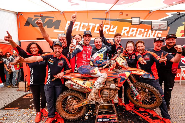 Josep Garcia, der für das Red Bull KTM Factory Racing Team fährt, hat in diesem Jahr erneut seine Dominanz in der EnduroGP-Weltmeisterschaft unter Beweis gestellt. Der spanische Ausnahmepilot sicherte sich in Brioude nicht nur den EnduroGP-Titel, sondern holte auch den Weltmeistertitel in der E1-Klasse. Nach einem nahezu perfekten Wochenende auf seiner KTM 250 EXC-F triumphierte er in beiden Kategorien und krönte seine Saison mit einem beeindruckenden Doppelsieg.