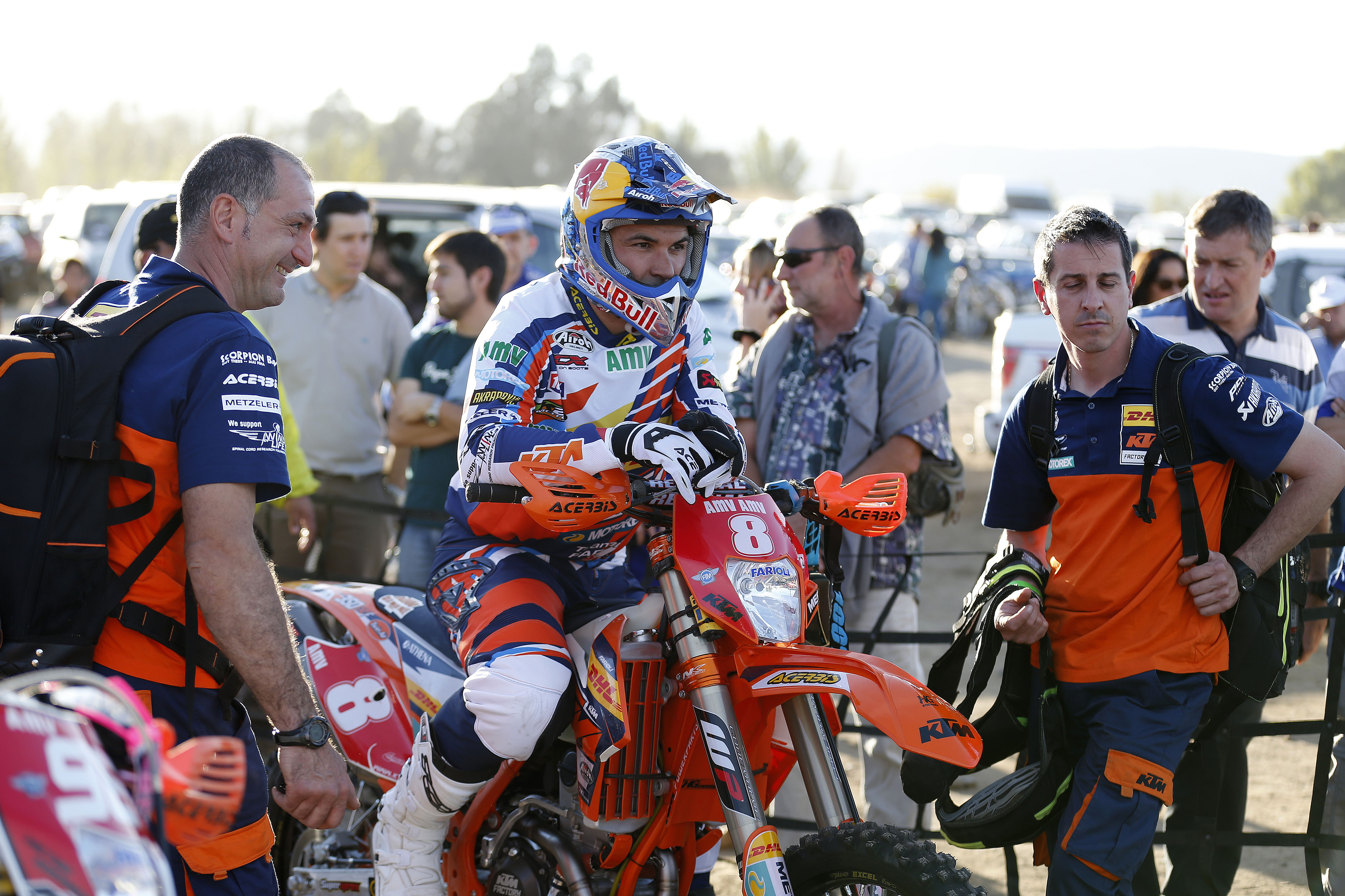 Das hatte sich Pela Renet (F-Husqvarna) anfangs wohl auch gedacht, musste sich nach dieser Ansage aber eher nach hinten orientieren. Nicht in der Lage Meo die Stirn zu bieten kämpften die restlichen Top-Piloten und die verbleibenden Podiumsplätze. Noch etwas angeschlagen von seinem Crash am ersten Fahrtag, konnte sich Pela Renet vom fünften auf den zweiten Gesamtrang vorarbeiten. Genau 14 Sekunden dahinter sortierte sich im Tagesziel Alex Salvini (I-Honda) an dritter Position ein. Er lieferte sich bis zur letzten Prüfung ein sehenswertes Duell mit Beta-Pilot Johnny Aubert (F) und verwies diesen Schlussendlich knapp auf den undankbaren vierten Rang.