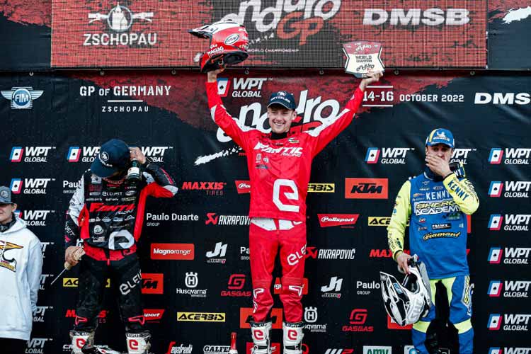 Am letzten Renntag der WPTGlobal FIM EnduroGP-Weltmeisterschaft 2022 wurden heute in Zschopau, Deutschland, die letzten Weltmeister des Jahres gekrönt. Zum spannenden Ende der Serie gesellten sich in der äußerst wichtigen Abschlussrunde der Saison Wil Ruprecht (TM Racing), Brad Freeman (Beta) und Harry Edmondson (Fantic) zu Andrea Verona (GASGAS), Zach Pichon (Sherco) und Jane Daniels (Fantic) als FIM-Enduro-Weltmeister 2022.