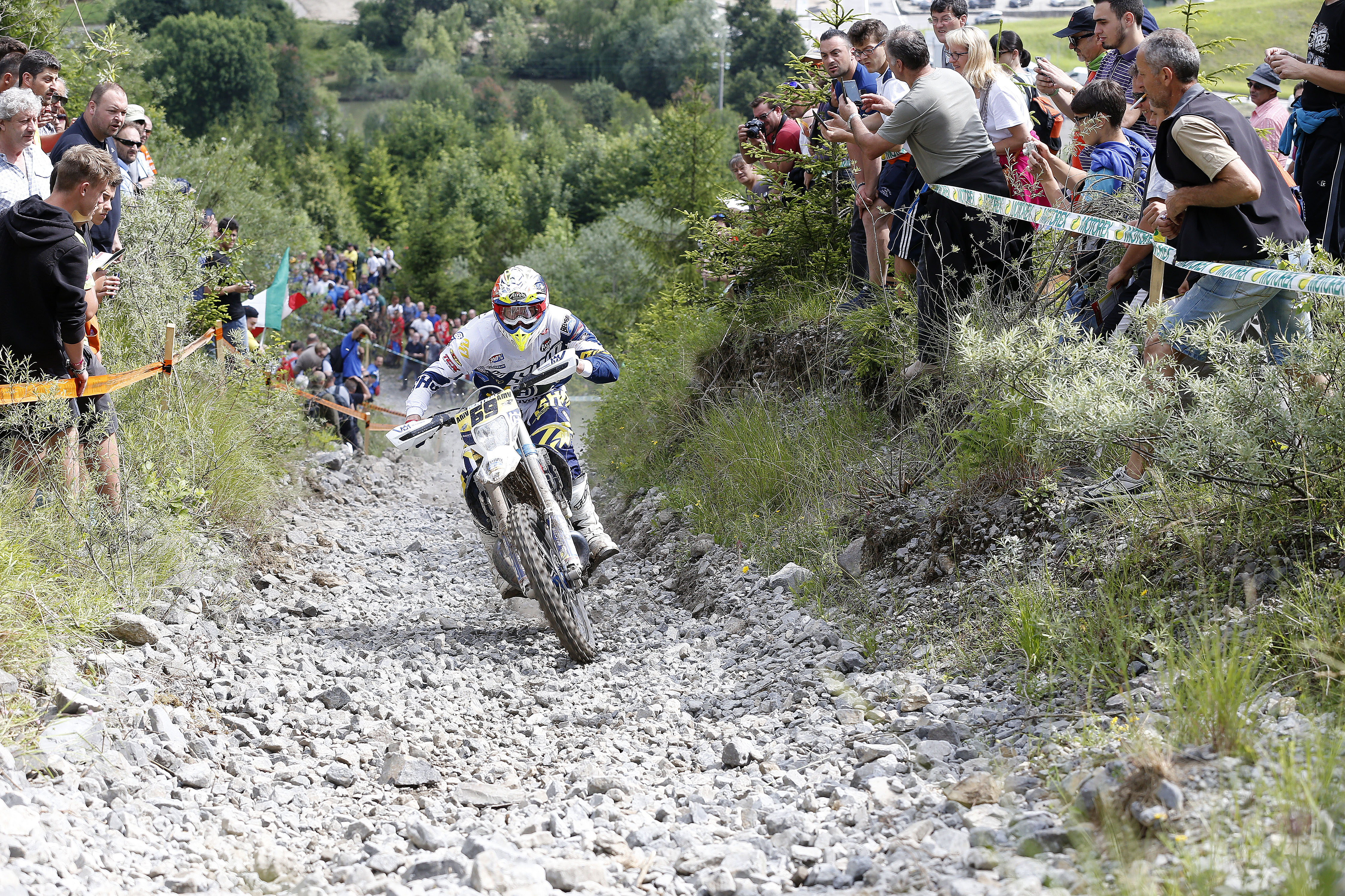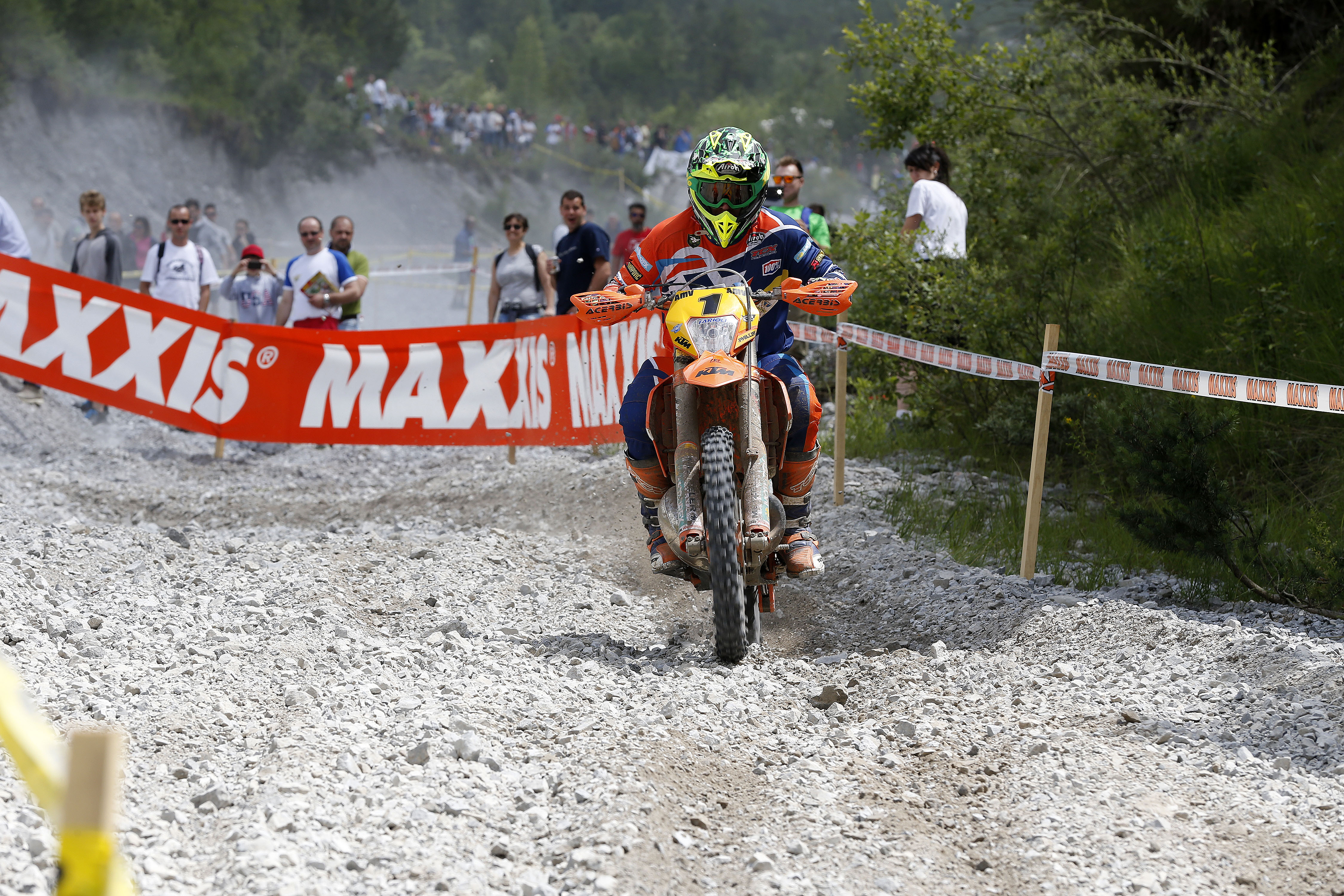 In der E2 ist Husqvarnas Pela RENET (F) drauf und dran die Krone an sich zu reißen. Am ersten Fahrtag in Italien konnte der Franzose einen klaren Sieg vor Antoine Meo einfahren. Er übernahm schon in der ersten Runde die Führung und konnte diese trotz zweier Fehler und einem immer stärker werdenden Antoine MEO (F-KTM) behaupten. Meo gewann die letzten beiden Tests, jedoch hatte RENET mit 7 Sekunden genügend Reserven um den Tag zu gewinnen. „Es war ein enger Kampf über den ganzen Tag hinweg“, sagte RENET. „Ich habe die Führung am Ende der ersten Runde übernommen, denke ich, dann in der zweiten Runde wegen einigen Fehlern weider verloren. Aber ich hart gepusht in der dritten Runde um wieder an die Spitze zu fahren. Es ist gut, einen weiteren Sieg auf dem Konto zu haben. “ Zwar wollte Alex Salvini (Honda) vor heimischem Publikum gewinnen, setzte auch alles daran um so schnell wie möglich unterwegs zu sein, aber im Tagesziel sollte es „nur“ zu Platz 3 reichen. Hinter dem Spitzentrio beendete Spaniens Jaume Betriu (Husqvarna) beendete seinen Tag als vierten und Sherco-Pilot Loic LARRIEU (Sherco) rundete die Top-5 am ersten Tag ab.