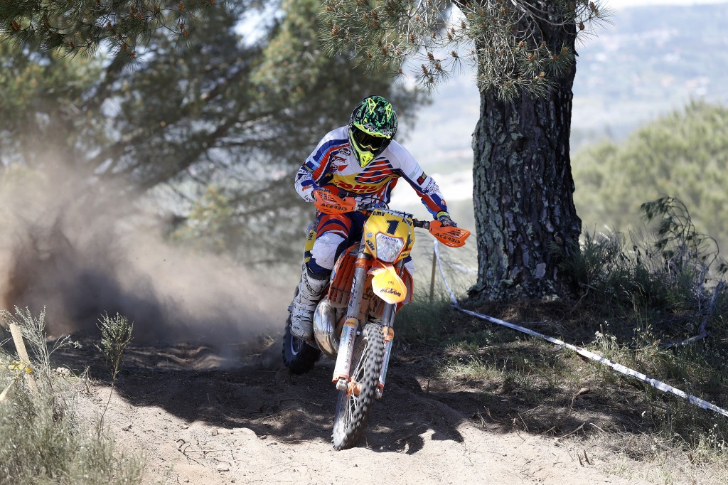 Zur Freude aller Fans des Franzosen ging dieser am Samstag trotz eines angeschlagenen Knies an den Start. Am ersten langen Fahrtag konnte jedoch TM-Pilot Eero REMES (FIN) seinen ersten Saisonsieg in der E1 einfahren. Remes übernahm die Führung am Ende der ersten Runde von Lorenzo SANTOLINO (S-Sherco). In den folgenden 2 Runden hatte der Finne dann seinen Rhythmus gefunden und war für die Konkurrenz nicht zu schlagen. „Ich glaube, ich war in der ersten Runde ein wenig eingeschlafen, aber dann bin ich aufgewacht und konnte das Rennen gewinnen“, gab Remes zu. „Ich konnte in den Tests viel pushen. Es war ein harter Tag – der härteste der bisherigen Saison wie ich finde. Und morgen wird noch schwieriger werden! “ so Remes weiter. Christophe NAMBOTIN (F-KTM) konnte trotz seines Knies 4 Prüfungsbestzeiten in der E1 hinlegen und sich in der Summe so den zweiten Platz am ersten Tag sichern. Sherco´s Lorenzo SANTOLINO (S), führte die E1-Klasse am Ende der ersten Runde an, konnte seinen Vorsprung aber nicht bis ins Tagesziel bringen und wurde am Ende dritter. Mit REMES und dann NAMBOTIN, die beide enormen Druck ausübten, hatte es der Sherco-Werkspilot nicht gerade leicht. Dennoch gelang ihm mit seinem ersten Podestplatz in diesem Jahr ein toller Erfolg.