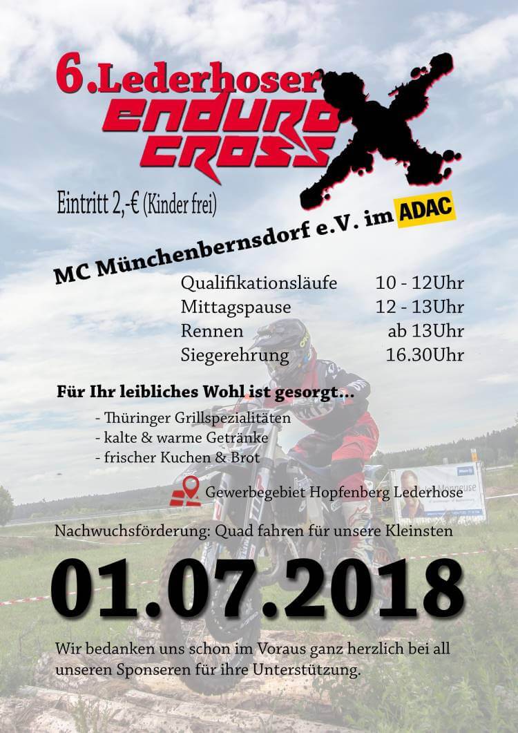 Enduro ExtremeEndurocross: 6. Lederhoser Endurocross am 01.07.2018 von Denis Guenther7. Juni 2018 Teilen Am 01.07. findet erneut das Lederhoser Endurocross statt Werbung⚡️Verpasse keine Enduro-News mehr und abonniere unseren WhatsApp-Kanal ✅