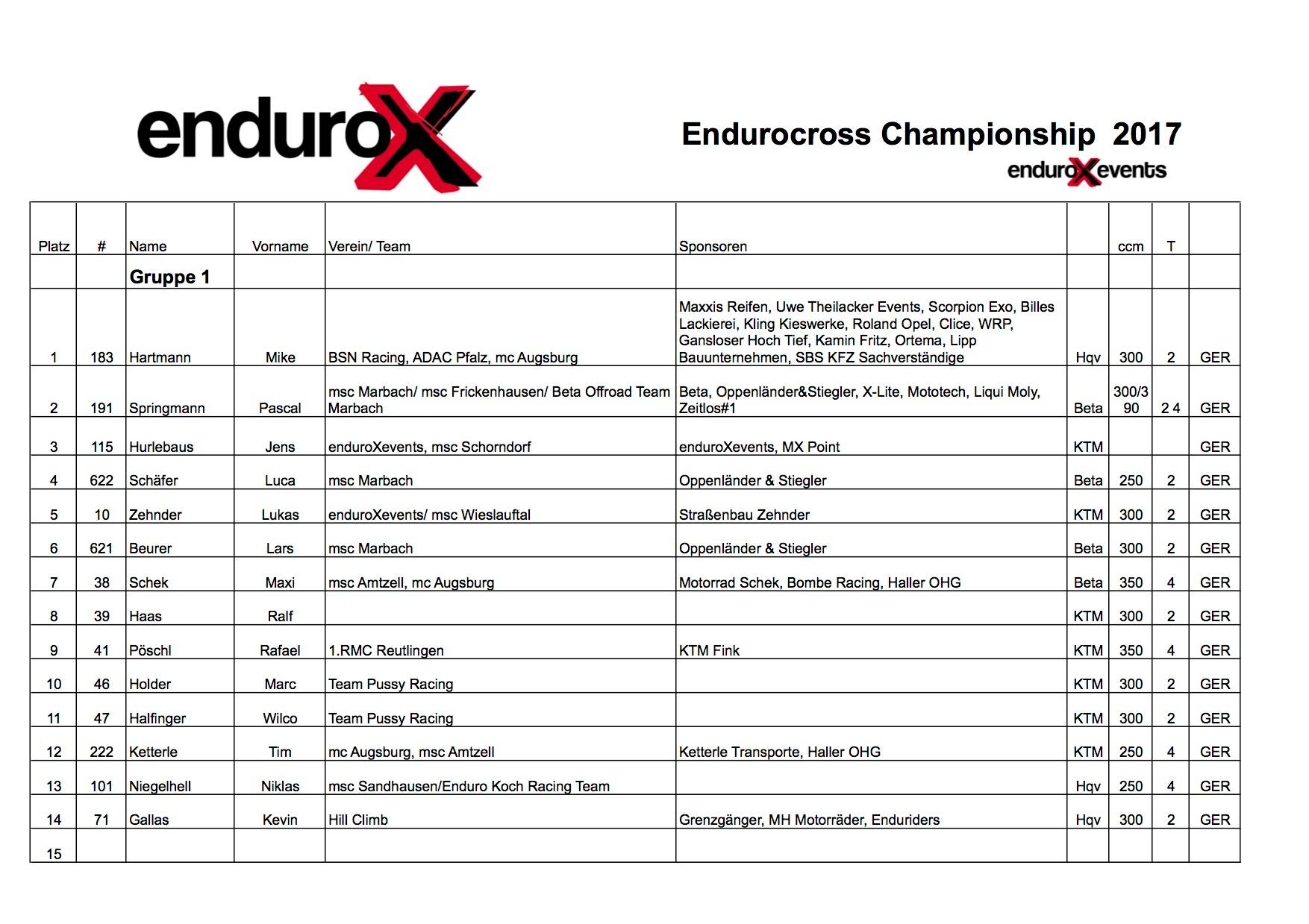 Am Sonntag startet der EnduroXCup in seine nächste Saison. 3 Läufe stehen in der einzigen Endurocrossserie Deutschlands in diesem Jahr auf dem Programm. Den Auftakt bildet Künzelsau, dort findet Ende Oktober auch das Finale statt. Dazwischen wird es noch einen Lauf beim MC Augsburg im September geben.
