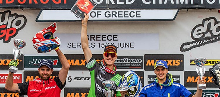 Dieser Maxxis Grand Prix von Griechenland brachte uns auch unseren allerersten Sieger in der Geschichte des neu geschaffenen Champion Lubricants Enduro Open World Cup. David KNIGHT (GB – TM), der seit Saisonbeginn bei jedem Rennen dabei ist und bisher ungeschlagen war, beendete den Job am Sonntag reibungslos und verlässt Griechenland, da er 14 Jahre nach seinem ersten Weltmeistertitel hier in Serres auch den Pokalsieger in der Kategorie Open Senior gewann! KNIGHTER besiegte den Österreicher Werner MÜLLER (KTM), 2. Und der Schwede Patrik ANDERSSON (Yamaha) komplettierte die Top 3 und holte sein allererstes internationales Podium!