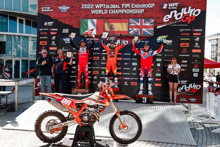 - Die Tagessieger Andrea Verona und Brad Freeman schlossen sich Garcia auf dem EnduroGP-Podium an.