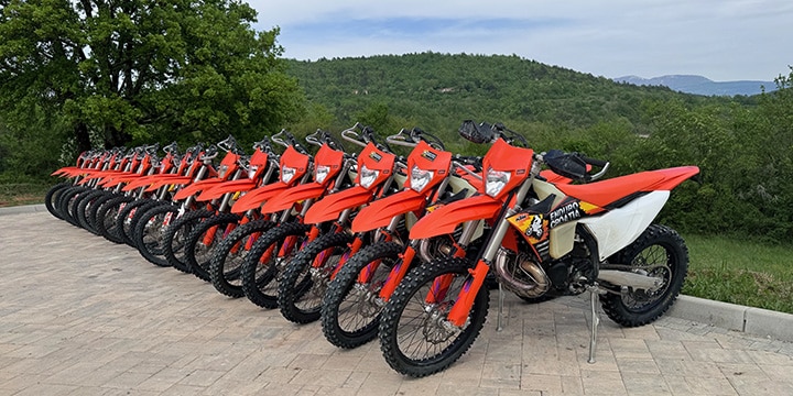 *Werbung* Komm zu Enduro Croatia, bring dein eigenes Motorrad mit oder entscheide dich für ein Mietmotorrad von KTM. Brandneu im Angebot haben wir die KTM TBI 300, Modelljahr 2024. Für Fans von 4-Takt-Motoren steht die KTM 350 EXC-F zur Anmietung bereit!