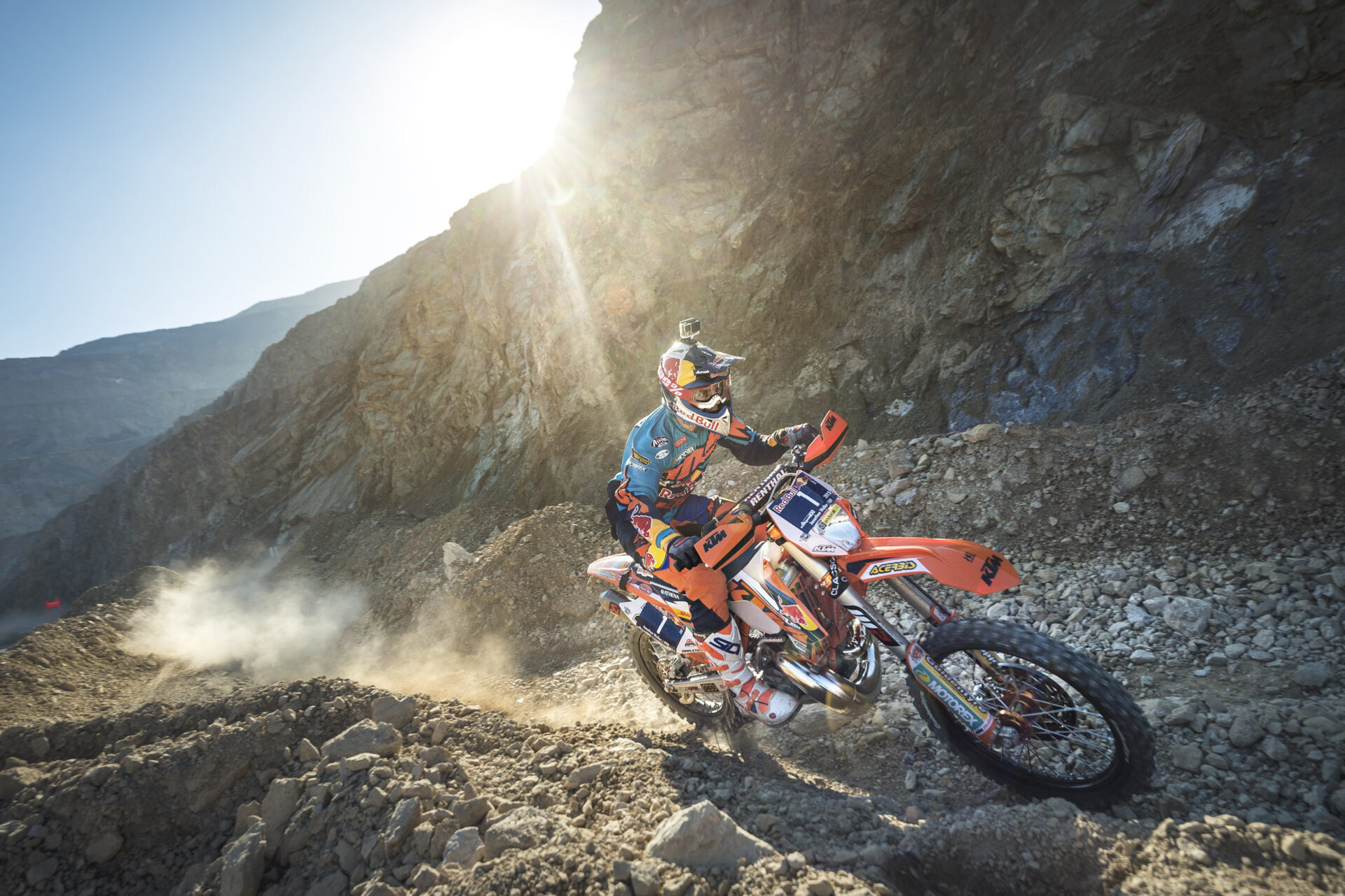 Bei wolkenlosem Himmel und Temperaturen um die 30 Grad war heute der Staub auf der Strecke der wohl größte Gegner der Prolog-Teilnehmer. Der Brite Jonny Walker nutzte als Vorjahressieger seine Startnummer 1 in beeindruckender Manier: satte 5 Sekunden Vorsprung auf Reisinger und Blazusiak, die nur wenige Hundertstelsekunden auseinander liegen. Die weiteren Top-Favoriten des Erzbergrodeo 2015 ließen ebenfalls nichts anbrennen und qualifizierten sich allesamt unter den Top-50 und somit für die erste Startreihe des Red Bull Hare Scramble am kommenden Sonntag! Österreichs erfolgreichster Xtreme Enduro Pilot Lars Enöckl (KTM) zeigte mit einem hervorragenden 4ten Platz erneut, daß der 25-jährige Niederösterreicher zu Recht zur Weltspitze zählt. Unter den Top-50 platzierten sich heute Fahrer aus 14 Nationen, darunter ganze 17 Österreicher – ein deutliches Aufzeigen der talentierten heimischen Offroadszene!