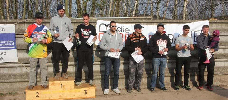 Durch die weniger angereisten Starter zog man den Start des ersten Gruppenrennens auf 12 Uhr vor, erstmals wurde dieser mittels einer Ampel gestartet. Die Favoriten waren zunächst etwas ins Hintertreffen geraten. Sowohl Derrick Görner wie auch Kevin Lindner mussten sich zunächst durchs Feld kämpfen. Für Lindner kam nach rund 30 Minuten mit einen Technischen Defekt das vorzeitige Ende.