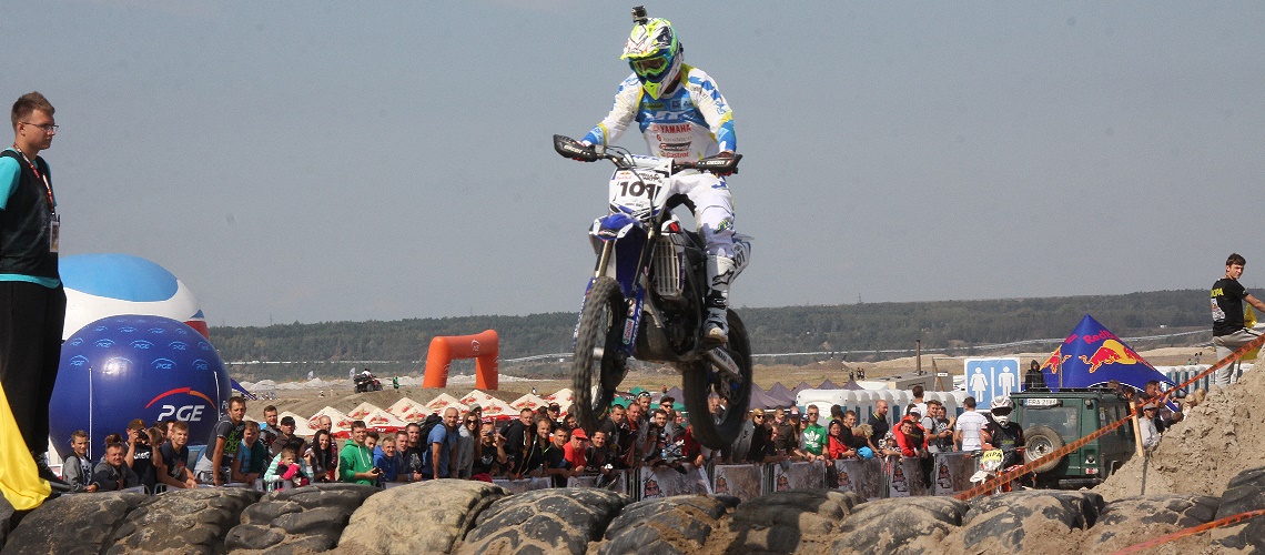 Die beste Zeit legte der Pole Lukasz Kurowski in den Dreck des größten aktiven Tagebaus Europas. Er springt damit für Blazusiak ein, der wegen seiner Viruserkrankung nicht an den Start geht. Somit hatten die bereits heute schon zahlreich angereisten Fans einen neuen Volkshelden anzufeuern. Taddy schaute sich das treiben auf der Strecke von außen an und hatte sehr viel Spaß die Hobbyfahrer zu beobachten. Diese hatten im Endurocross so ihre Probleme, hauptsächlich an einen Metallrohr.