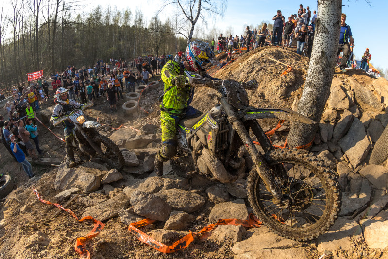 Am besten kam Manuel Lettenbichler durch die ersten Runden und baute einen kleinen Vorsprung aus. Zur Rennhälfte schlug aber die Stunde von Wade Young. Er holte immer mehr von seinem Rückstand auf und ging nach einem kleinen Fehler von „Letti“ im DG Design – LostWay an den Süddeutschen vorbei. Wade Young konnte sich somit zum zweitenmal den Sieg beim Wiesel-X holen. Bereits die erste Ausgabe 2013 konnte er damals für sich entscheiden. Den letzten Platz auf dem Podest holte sich Mario Roman ebenfalls auf einer Sherco.
