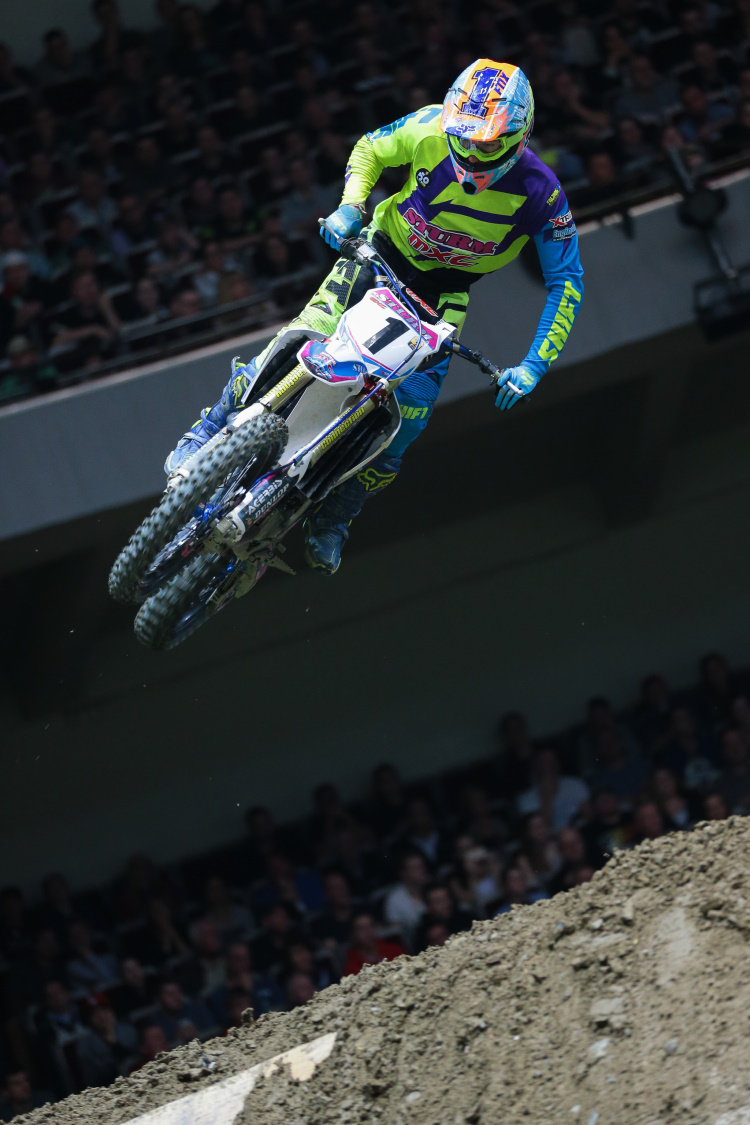 Die Ereignisse überschlugen sich im SX1-Finale am Samstagabend. Unmittelbar nach dem Start lagen die beiden Titelaspiranten um den Cup-Sieg buchstäblich im Dreck. Ben Lamay (Meyer Racing Team) und Greg Aranda (Sturm Racing Team) traten gemeinsam die Aufholjagd an, die sie bis auf die Positionen sechs und acht nach vorne spülte. Lamay konnte so nicht ausreichend Boden auf den Franzosen gutmachen, Aranda triumphierte nach 2014 und 2015 zum dritten Mal in Folge im ADAX SX-Cup. Ein echt bescheidenes Wochenende liegt hinter mir, gestand Aranda. Nach meinem Sturz am Freitag musste ich das Finale auslassen, weil ich echt Kopfschmerzen hatte. Heute habe ich mich maximal zurückgehalten und hatte trotzdem wieder Pech. Mit einem verschmitzten Lächeln fügte er dennoch hinzu: Trotzdem hat es zum Titel gereicht, so dass ich am Ende doch glücklich bin. Aranda (139 Punkte) verwies in der Cup-Wertung Jace Wayne Owen (123 Punkte, stielerguppe.mx Johannes-Bikes Suzuki) auf Platz zwei, Lamay (122 Punkte) wurde Dritter.