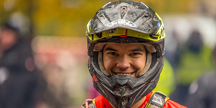 Schon im zarten Alter von vier Jahren saß Fynn das erste Mal auf einem Motorrad und hat seitdem nie wieder aufgehört. Heute, 13 Jahre später, kann er auf eine intensive Zeit voller Lernmomente, Entwicklungen und Erfolge zurückblicken. Fynn lebt in der Nähe von Frankfurt am Main, einem Ort, der zwar für Enduro-Training nicht ideal ist, aber einige coole Cross-Strecken zu bieten hat.