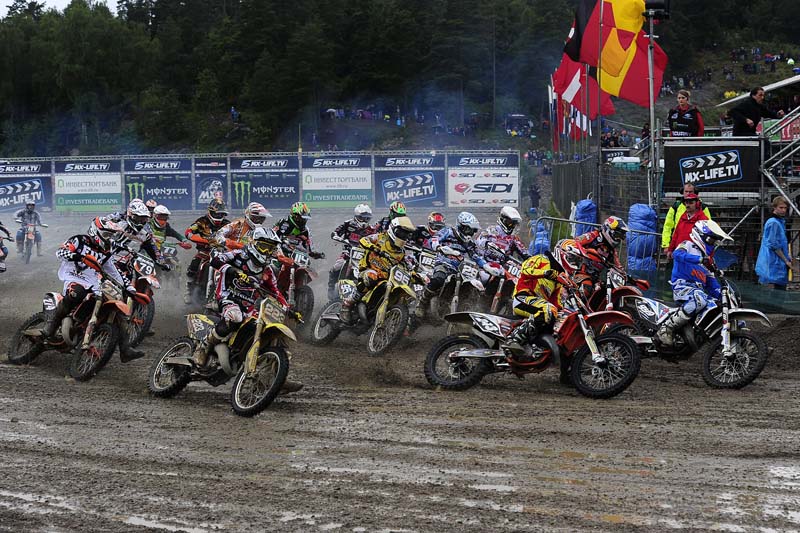 Im 2. Teil der EMX125 war die Strecke schon sehr aufgeweicht und schlammig. Nach dem Start sind mehrere Fahrer gestürzt. Pauls Jonass war der erste um die Kurve, gefolgt von Henry Jacobi. Unser deutscher Pilot konnte an den anderen vorbei fahren, musste aber schnell ein Paar Plätze abgeben. Trotzdem eine super Leistung für den KTM Piloten. Auch Tim Gajser hatte sich schnell wieder auf seinen gewohnten Platz befördert, sodass Jonass sich mit dem 2. Platz zufrieden geben musste, gefolgt von Klingsheim. Der Thüringer, Henry Jacobi konnte schließlich mit dem 5. Platz den 2. Lauf beenden. James Dunn hatte beim Start technische Probleme mit dem Bike und damit war der Lauf für ihn gelaufen. Tim Gajser, schnellste Rennrunde 2:01.762.