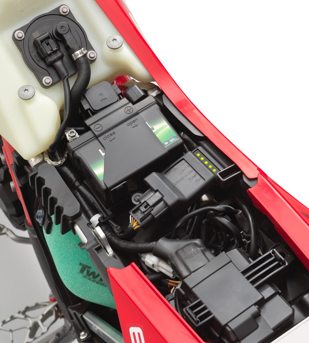 Die Motocross-Modelle von GASGAS sind jetzt schon die besten Dirtbikes, die es auf dem Markt gibt, aber das hat unsere Ingenieure nicht davon abgehalten, sie noch besser zu machen! Mit neuen Stahlrahmen, neuen Aluminium-Auslegern und neuen Schwingen verfeinern wir die perfekte Kombination aus messerscharfem Kurvenverhalten und Richtungsstabilität weiter, um den Spaßfaktor zu maximieren. Und um unsere 2-Takter MC 125 und MC 250 auf den neuesten Stand zu bringen, lassen sich beide Motorräder jetzt mit einem einfachen Druck auf den neuen Elektrostarter zum Leben erwecken. Verabschiede dich von diesem Kickstart-Unsinn. Außerdem werden sie jetzt von einer cutting-edge Drosselklappeneinspritzung angetrieben, die für ein knackigeres Ansprechverhalten und eine deutlich verbesserte Leistung auf der Rennstrecke sorgt.
