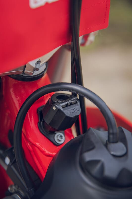 Die vorherige Generation der GASGAS-Enduros war bereits extrem wendig und auch bei höheren Geschwindigkeiten super stabil. Dank der leichteren und leistungsstärkeren neuen Motoren in der gesamten Produktpalette konnten wir diese Fahreigenschaften noch weiter verbessern. Zu diesem Zweck haben unsere Ingenieure die Motoren in den neuen Rahmen so positioniert, dass das Gewicht zentralisiert und die Balance optimiert wird. Klingt nach einer minimalen Veränderung, die aber umso deutlicher wird, wenn du auf der Piste unterwegs bist.