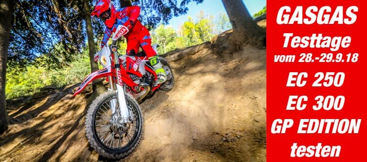 Es können die 2019er GasGas Modelle getestet werden, darunter die EC 250, die EC 300 sowie die GP EDITION.