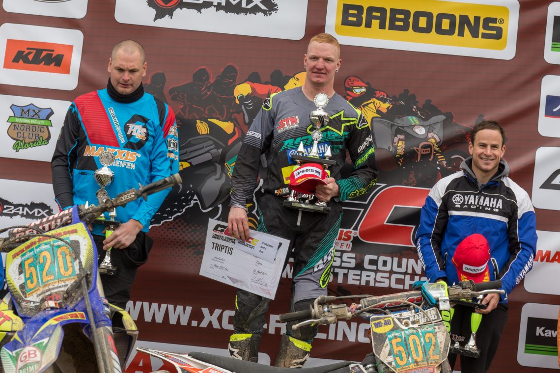 Zum Abschluss des Auftaktwochenendes stand die neue Klasse XC Supersprint auf dem Plan. Die rund 25 Teilnehmer absolvierten am Mittag bereits ihr freies Training und waren somit bereit für ihr Rennen. 40 Minuten plus eine Runde auf einer stark verkürzten Strecke auf dem MX-Kurs ist die Vorgabe des Renn-Promotors BABOONS. Auch Chris Gundermann, der gerade eben noch das Rennen der Pros gewonnen hat, stand im frischen Trikot erneut bereit auf der Startgerade. Nachdem beide Startreihen zusammen auf die Strecke geschickt wurden, war es erneut Gundermann, der vom Start weg in Führung ging. Einzig Michael Kartenberg konnte Gundermann ernsthaft Paroli bieten und blieb dran am 24-jährigen Heißsporn. Nach etwa 20 Minuten verließen Gundermann die Kräfte und Kartenberg kann nicht nur näher, sondern zog auch vorbei an Gundermann. Der konnte dann kräftemäßig nicht mehr kontern und musste Kartenberg ziehen lassen. Dieser holte sich letztlich den Sieg in der neuen Klasse, Gundermann wird nach tollem Kampf Zweiter und Roland Diepold jun. holte sich Rang drei.