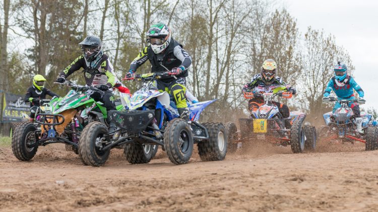 Sonntag morgens ging es mit den Quad und ATVs weiter. Mit an Board auch die zwei neuen Klassen XC Quad Woman und XC Quad Super Senioren. Trotz eines sehr vollen Starterfelds lief der Start und auch das Rennen sehr diszipliniert ab. Der Vorjahresmeister der Quad Pro, Kevin Ristenbieter, setzte sich vom Start weg an die Spitze und behauptete diese bis zum Schluss. Seine Kontrahenten auf Platz zwei und drei, David Freidinger und Richart Schmidt, hatten etwas mehr zu tun. Freidinger mit Problemen am Start und Schmidt mit einem bewussten „Fehlstart“, allerdings zu spät und nicht zu früh, pflügten sich durch das komplette Feld der Pros hindurch – bis auf das Treppchen. Schmidt wollte nach eigener Aussage „einfach mal in Triptis ins Ziel kommen“, und hatte es aus diesem Grund am Anfang ruhig angehen lassen.